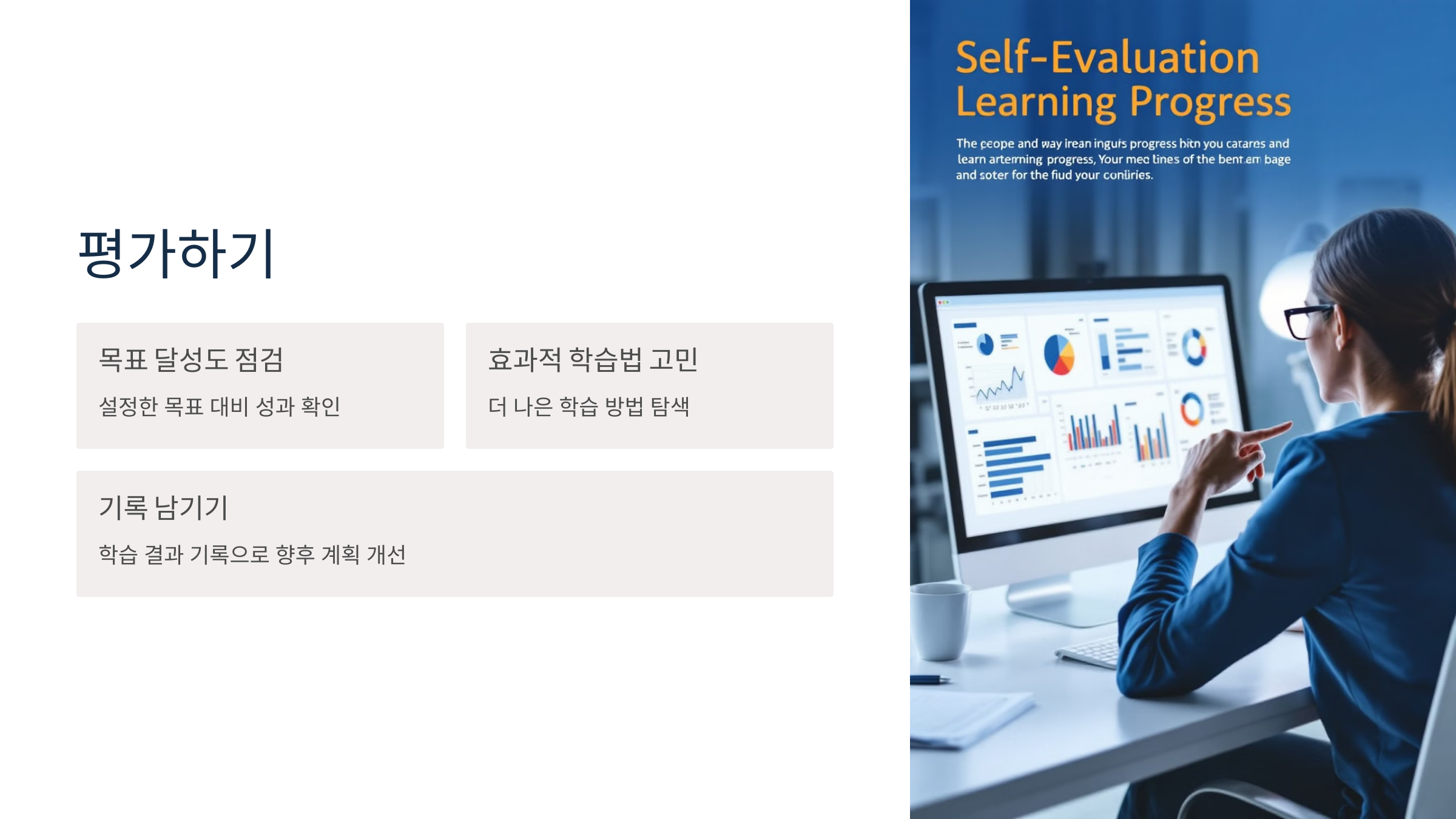 - 목표를 얼마나 달성했는지 점검하세요.