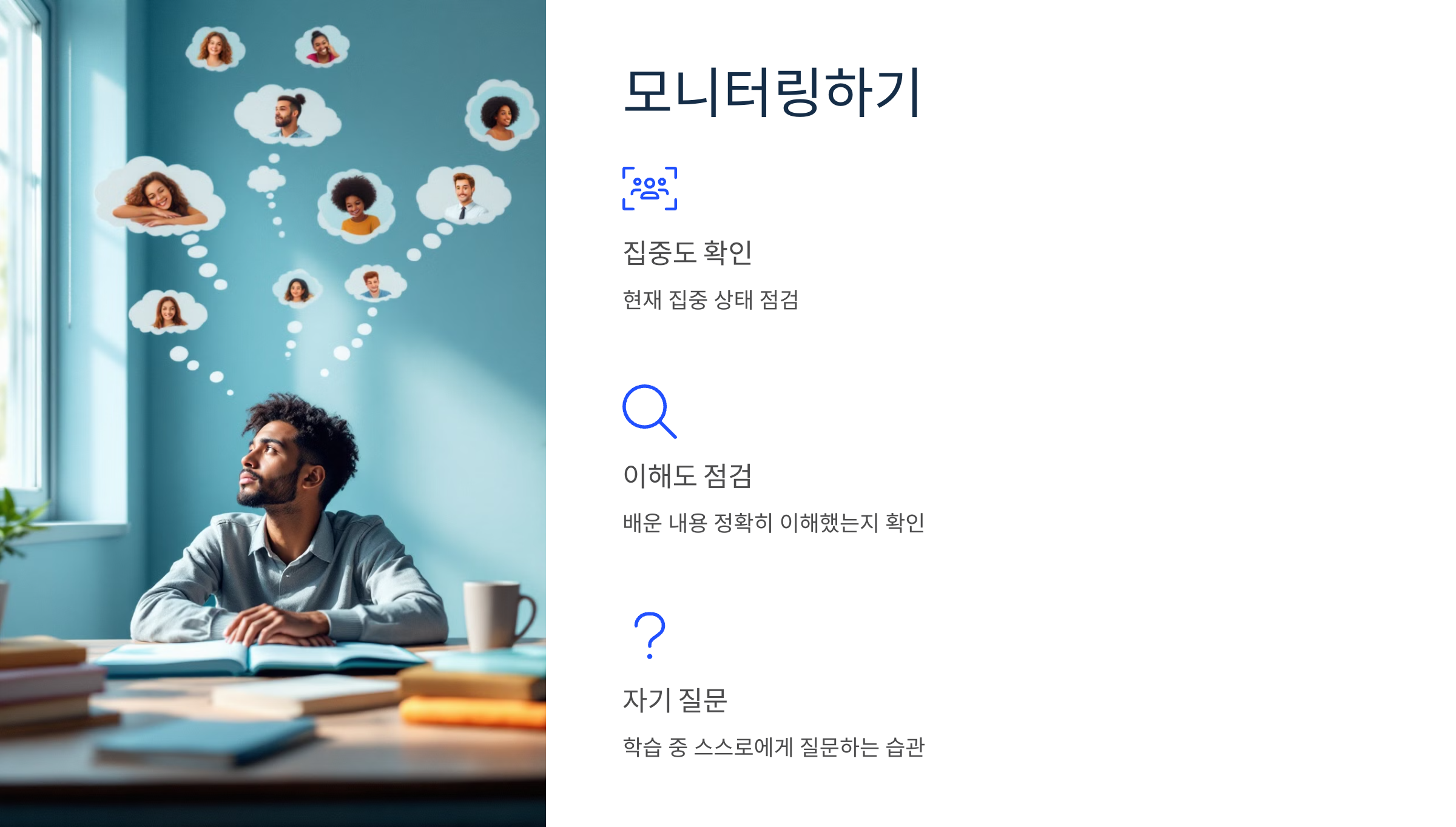 학습 중 자신의 상태를 주기적으로 점검하세요.