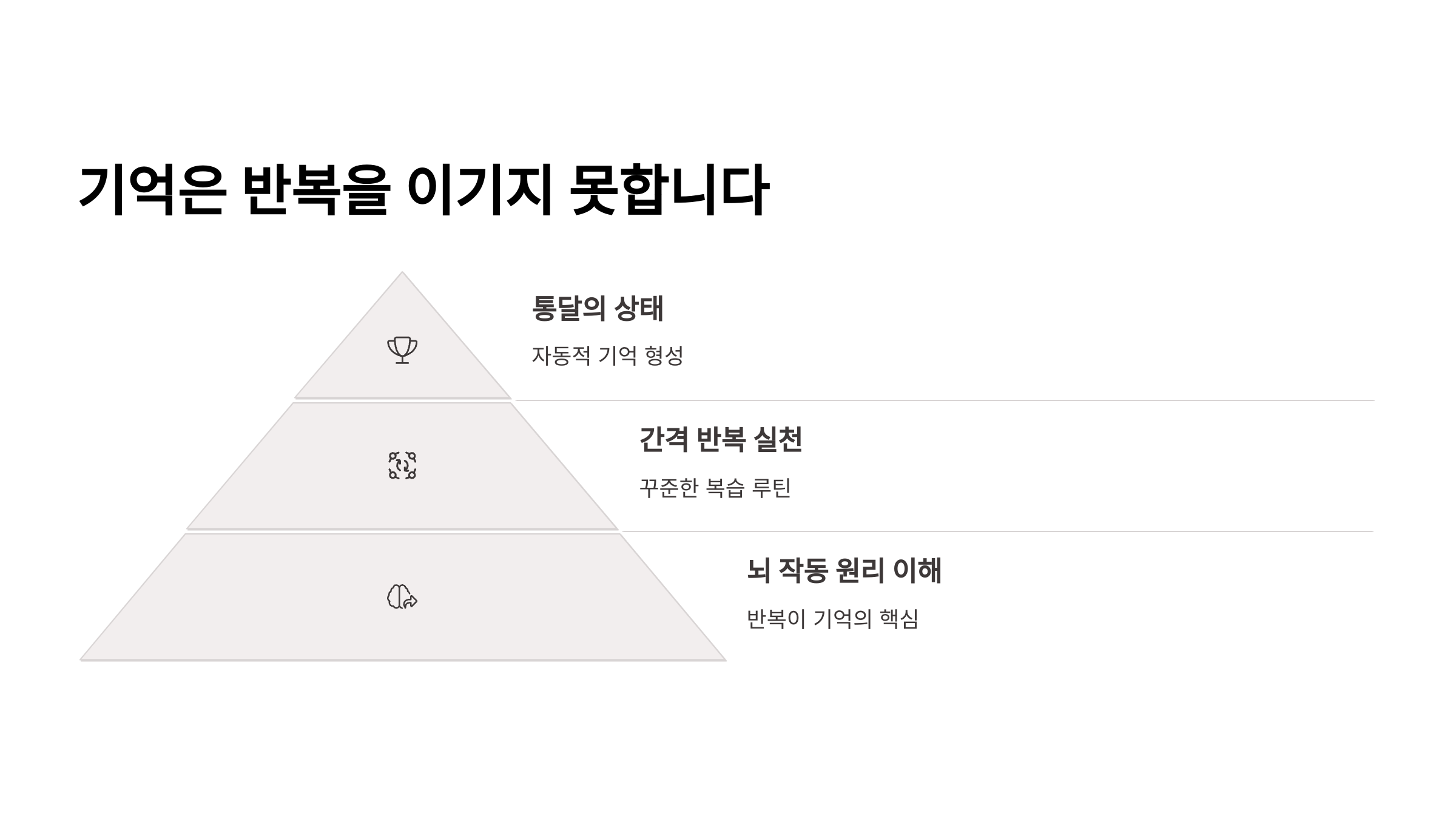 학습은 단순히 많은 시간을 투자하는 게 아니라, 뇌의 작동 원리를 이해하고 그것에 맞게 반복하는 것이 핵심입니다.