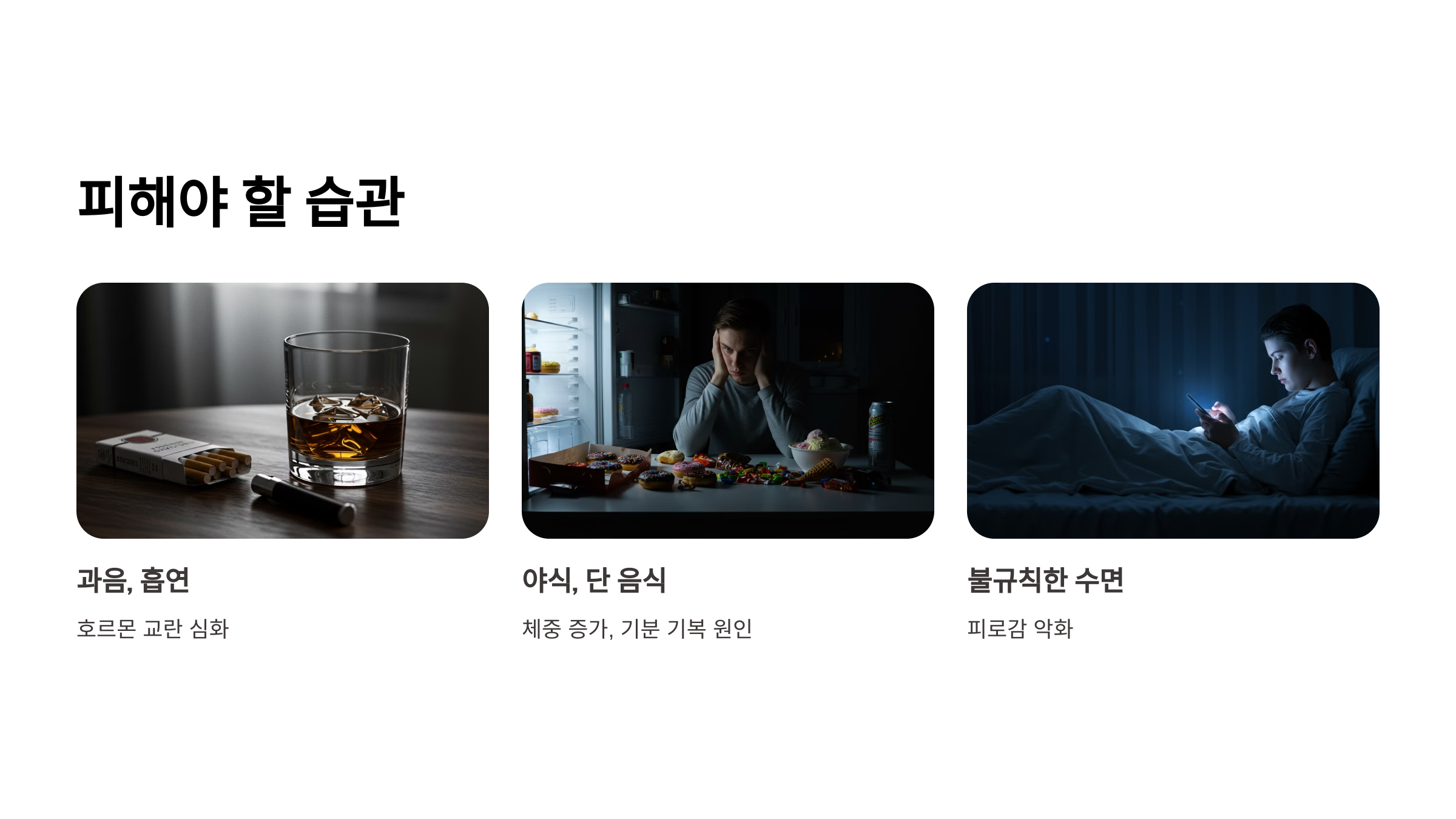 - 📛 과음, 흡연은 호르몬 교란을 심화시켜요.