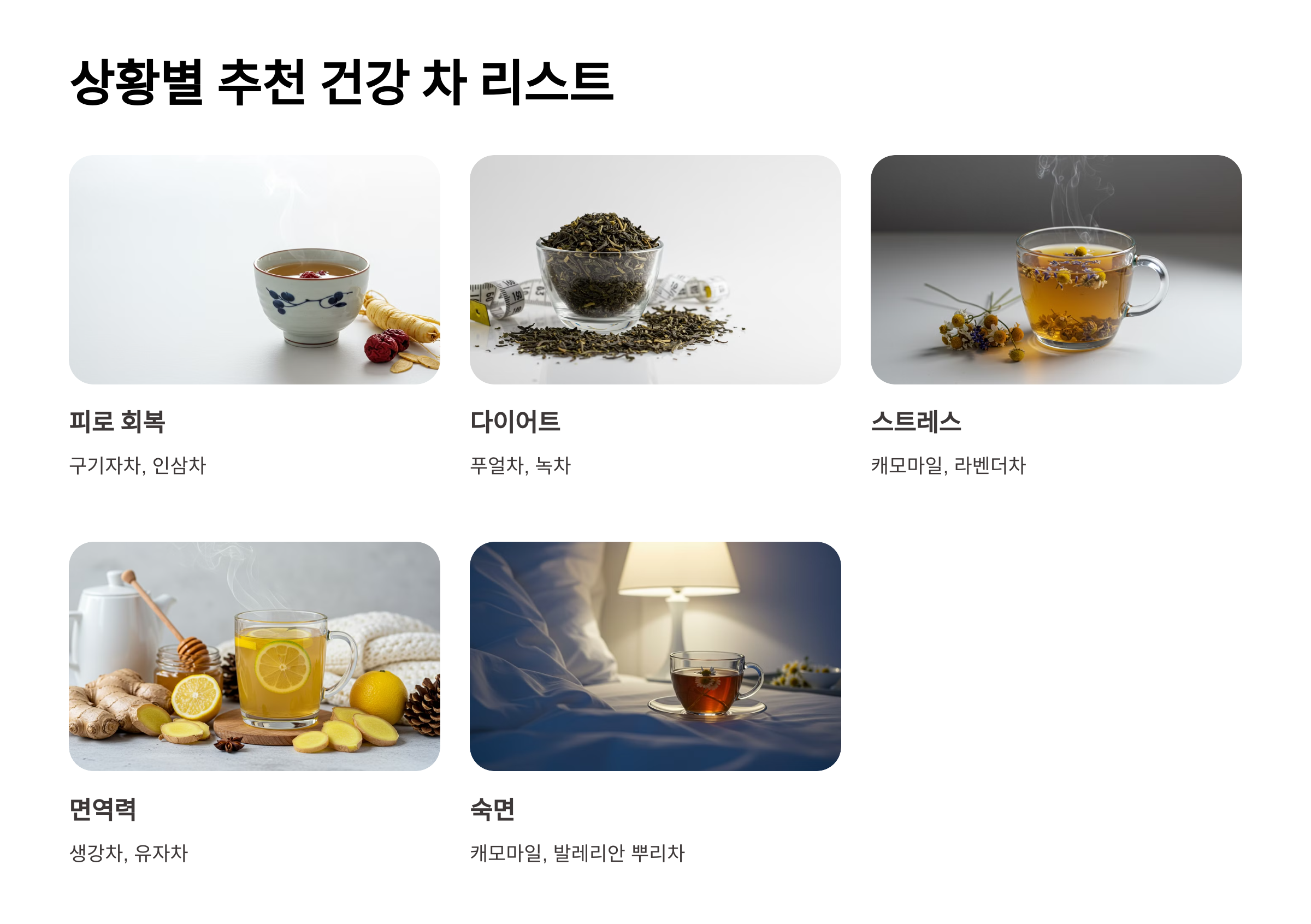 - 상황별 추천 건강 차 리스트