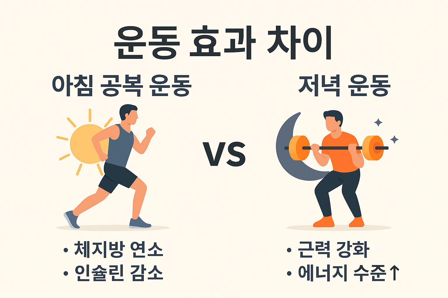 | 항목 | 아침 공복 운동 | 저녁 운동 |